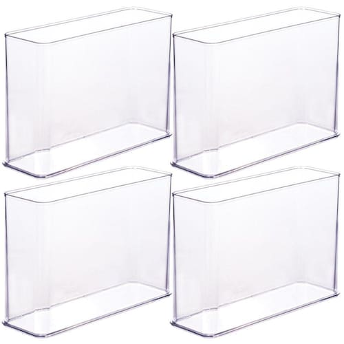 - Super versátil: Os organizadores se encaixam em qualquer espaço, seja ele vertical ou horizontal. A base de cada organizador serve como tampa para o item semelhante que estiver alinhado imediatamente abaixo;