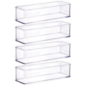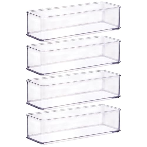 - Super versátil: Os organizadores se encaixam em qualquer espaço, seja ele vertical ou horizontal. A base de cada organizador serve como tampa para o item semelhante que estiver alinhado imediatamente abaixo;