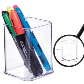 O organizador é produzido em poliestireno transparente e suas medidas, em centímetros, são as seguintes: