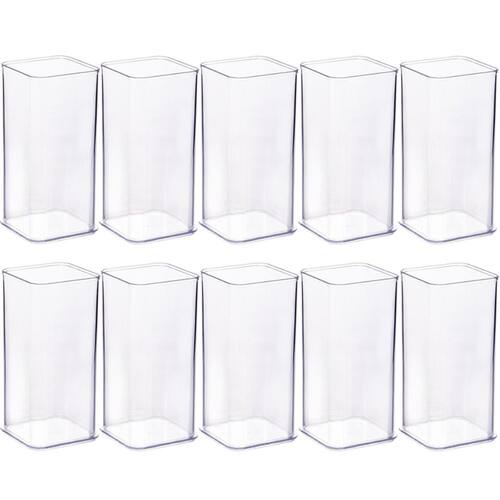 - É fabricado em poliestireno (PS), um plástico super transparente muito similar ao acrílico, atóxico e que não leva BPA em sua composição.