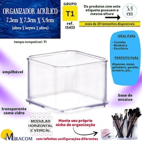 O organizador é produzido em poliestireno transparente e suas medidas, em centímetros, são as seguintes: