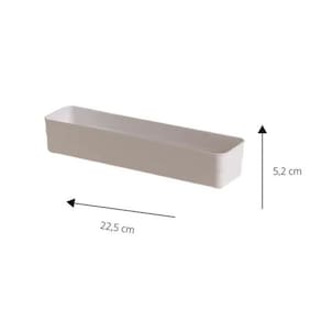Organizador de Plástico Branco 30x7,5x5,2 cm DescriçãoGavetas desorganizadas nunca mais Com os nossos organizadores voce garante para a sua casa muito mais praticidade e facilidade para o seu dia a dia Nossos modelos sao modulares o que garantem que se aloquem perfeitamente nos mais diversos tipos e tamanhos de gavetas de acordo com a sua necessidade Um produto de otima qualidade resistente e disponivel em diversos tamanhos um item que proporciona um ambiente clean e moderno Finalidade de UsoOrganizar gavetas de diferentes tamanhos promovendo praticidade e otimizacao de espaco Descrição TécnicaMaterial: PlasticoCor: BrancoDimensoes: 30 x 7,5 x 5,2 cm (Comprimento x Largura x Altura)Modelo modular para melhor adaptacao em gavetas diversasProduto resistente e duravel EAN7898955006566