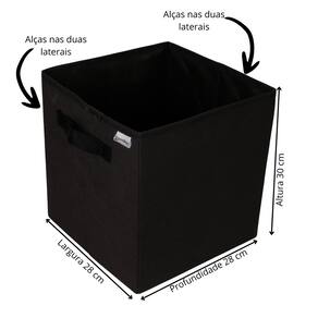 Dimensões: Largura 28cm, Altura 30 cm | Profundidade 28 cm | Profundidade 28 cm | Peso 580g Material: TNT 80g | Estrutura de cardboard reforçado| Poliéster Cor padrão: Preto
