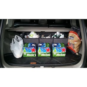O Organizador é ideal para organizar suas compras ou objetos dentro do porta malas de seu carro, o mesmo possui três compartimentos que podem ser utilizados simultaneamente ou individualmente conforme sua necessidade. Devido a sua flexibilidade o mesmo pode ser utilizado em todas as marcas de veículos que circulam em nossas ruas. Sua extrutura é feita de Papel Reforço e Revestida em TNT (material a base de fibra de polipropileno, tecido não tecido), Largura: 84cm Altura: 31cm Profundidade: 28 cm. cor Cinza/Preto