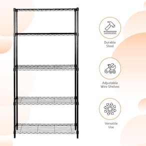 Organizador de prateleiras de armazenamento de aço pesado ajustável Amazon Basics de 5 prateleiras para cozinha, garagem, 36" L x 14" L x 72" H, preto