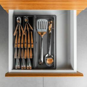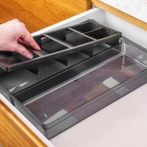 Organizador De Talheres E Utensilios Clear Preto Fechado DescricaoA Linha Clear une transparência e organização promovendo um design perfeito para organizar e ampliar o espaço das gavetas Ideal para diversas composições com 5 opções de organização e icones que indicam a setorizacao dos talheres Facilita a visualizacao e o acesso ao conteudo Produto resistente de alta transparencia facil higienizacao e praticidade para organizar a casa Finalidade de UsoOrganizar talheres e utensilios em gavetas otimizando espaco e facilitando o acesso Descricao TecnicaMaterial resistente e transparenteCor pretaProduto fechado para maior protecao e organizacaoDesign modular com encaixe facilDimensoes nao especificadasFacil de limpar e higienizar EAN7908466018504