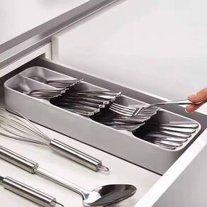 Diga adeus à desordem e dê as boas-vindas à organização perfeita em sua cozinha com o nosso Organizador de Gaveta para Talheres, Garfos, Colheres. Criado com um design compacto, este acessório inteligente vai revolucionar a maneira como você mantém seus utensílios em ordem na gaveta.