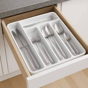 Descubra a praticidade e a elegância do Organizador de Talheres 5 Divisórias com Extensor. Este organizador foi projetado especialmente para otimizar o espaço da sua gaveta, permitindo que você armazene seus talheres, de forma organizada e acessível, permitindo que você deixe sua gaveta toda organizada.