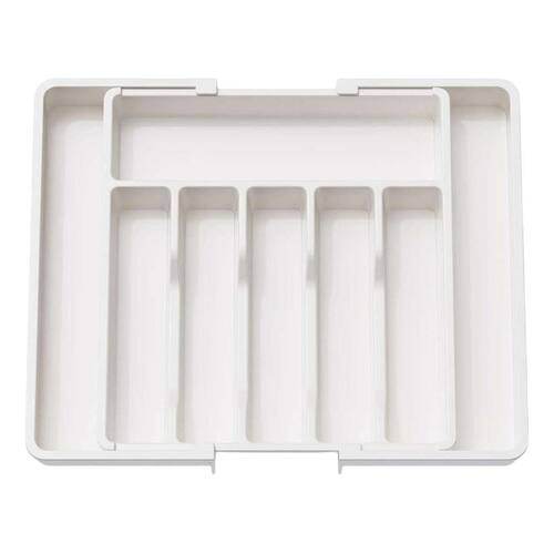 Organizador De Talheres Para Gaveta Expansível Divisórias Cor: Branco Transforme suas gavetas com praticidade e estilo Este organizador de talheres expansível é a solução ideal para manter seus utensílios sempre no lugar certo. Com sistema ajustável de 33 a 57 cm de largura, adapta-se facilmente a diferentes tamanhos de gavetas, otimizando o espaço e garantindo muito mais organização no dia a dia.