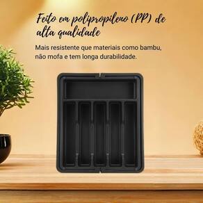 Alta capacidade: Com vários compartimentos, acomoda talheres, utensílios grandes e pequenos.