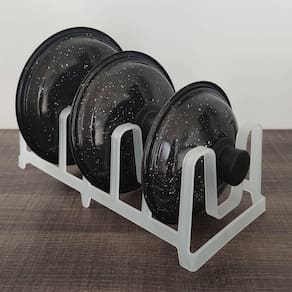 Organizador de Tampas de Panela Armário Formas Travessa #Suporte para Tampas #Bancada Organizada #Secador de Louças Garantia: 90 dias / Peso: 175g / Cor: Natural, Verde Menta, Cinza ou Branco / Ref: OT100 Dimensões: 15,5cm (C) x 34,5cm (L) x 12cm (A) Dimensões das Divisórias: 4cm (L) Dimensões Para Encaixe de Copos: 6cm (D) x 9cm (A) Espessura: 5mm Comporta: 6 Tampas de panelas ou copos e xícaras. Cuidados: Não lavar com materiais abrasivos. Material: - Polipropileno. Você que deseja ter praticidade para escorrer ou guardar suas tampas, o organizador multiuso é o item essencial. O porta tampas de panela pode ser utilizado também como suporte para copos e porta tábuas de cortar. O suporte organizador de tampas possui 6 divisórias que valorizam o espaço de seus armários da cozinha, além de ter um design diferenciado que auxilia na decoração.