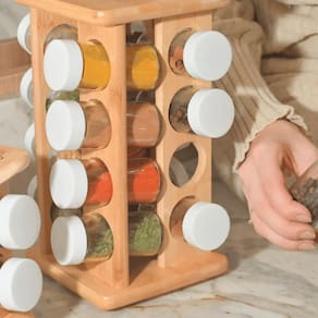 O Organizador de Temperos Giratório garante organização e cuidado para os seus temperos. A combinação do sistema giratório 360° com a transparência dos frascos facilita a visualização, trazendo mais tranquilidade e bem-estar para a sua rotina. O bambu promove a sustentabilidade de um material 100% renovável, e traz sofisticação para decorar a sua casa.