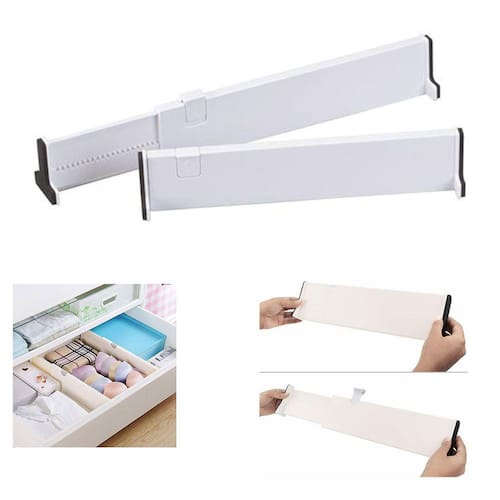O organizador de gaveta é expansível e pode ser ajustado de 28cm até 43cm, cabe na maioria das gavetas, você pode ajustar o comprimento de acordo com sua gaveta, criar uma solução de armazenamento personalizada para atender as suas necessidades. As divisórias de gaveta ajustáveis não são utilizadas apenas para gavetas, mas tambem como divisorias de livros em uma estante.
