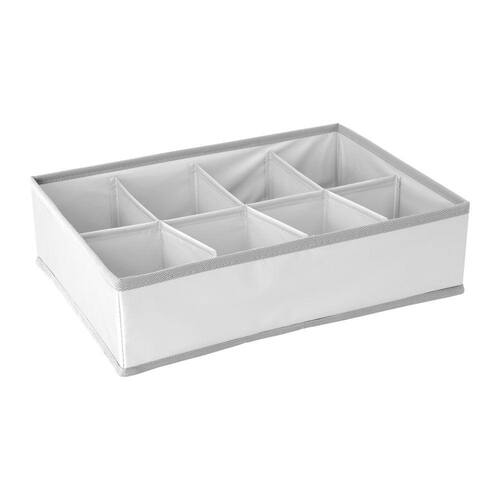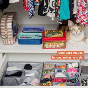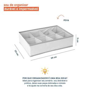 Esse é o organizador dobrável com 8 compartimentos, da OIKOS. :: Peças dobradas e visíveis: roupas íntimas, meias, biquínis, sungas, lenços, roupas de bebê e mais! :: Higiênico e fácil de limpar: material PEVA suave e impermeável, é só passar pano úmido e nada mais! :: Fácil de guardar: é só abrir o zíper que tem no fundo para dobrar o organizador.
