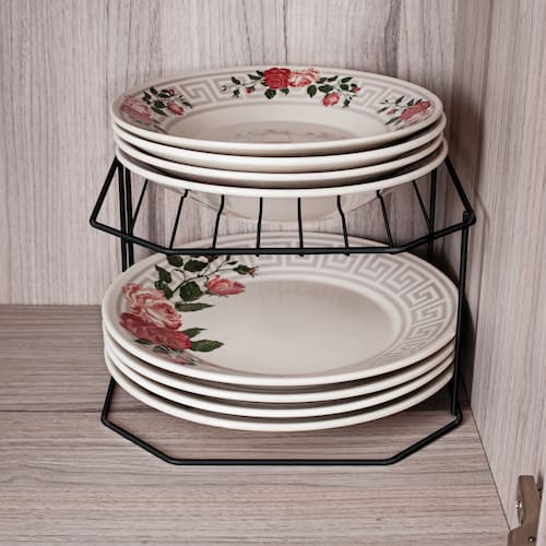 O Suporte Duplo para Pratos Preto da Utimil é perfeito para quem deseja otimizar espaço e manter a cozinha organizada com elegância. Com dois andares, ele permite acomodar pratos grandes, médios e pequenos de forma prática e funcional.