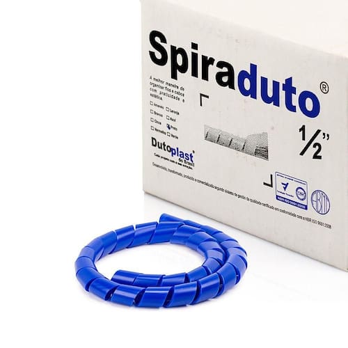 Organizador Fios E Cabos Spiraduto 1/2 Azul - 4 Metros O Spiraduto 1/2 foi projetado para proteger as instalações de equipamentos eletrônicos deixando um ambiente muito mais bonito e organizado. Ele é produzido em plástico super resistente monômero e flexível, que permite várias composições de layout.