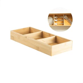 Com dimensões de 5,6cm de altura, 15cm de largura e 38cm de profundidade, este organizador é compacto e cabe facilmente em qualquer gaveta. Seu material em bambu é resistente e durável, garantindo uma longa vida útil ao produto.