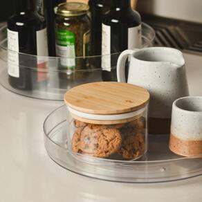 Detalhes do produto Sistema giratório 360 garante mais praticidade e fácil acesso aos itens Visual minimalista e super transparente Ideais para organizar utensílios na cozinha Organização funcional que otimiza espaços e facilita a rotinaInformações TécnicasAltura:4 cmLargura:25,5 cmComprimento:25,5 cmPeso:0.15 kgMaterial:PS+PET+AÇOO Organizador da Linha Clear traz mais praticidade e funcionalidade para sua rotina. Com sistema giratório 360, permite fácil acesso aos itens e utensílios, facilitando a organização em diversos ambientes. Seu design minimalista, com acabamento super transparente, combina com qualquer espaço, deixando tudo mais bonito e organizado. É perfeito para manter seus itens sempre à mão e bem organizados.Conteúdo da embalagem1 Organizador giratório baixo Ou Linha Clear