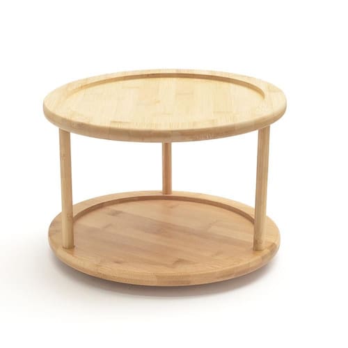 Transforme a organização da sua casa com o Organizador Giratório de Bambu 2 Andares da Oikos! Este prático acessório não apenas maximiza o espaço, mas também agrega um toque elegante à sua decoração.
