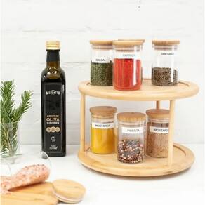 Organizador Giratório Em Bambu 2 Andares 26cm Yoi -