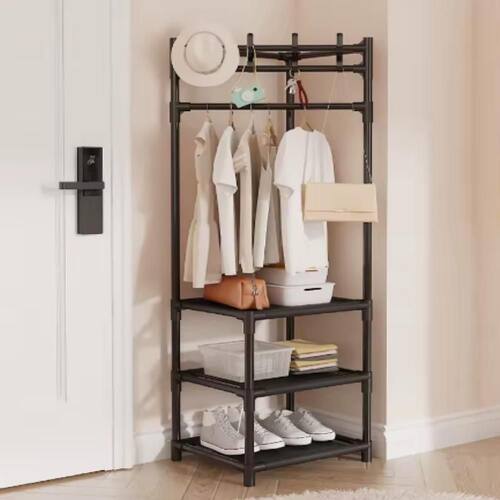 Organizador Guarda Roupas Cabideiro Suporte Portatil 3 Prateleiras Sapateira Multiuso Armario Closet Cor:preto
