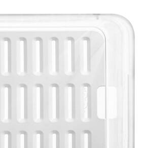O Organizador Clear vai armazenar e proteger os alimentos que precisam ser guardados na geladeira. Possui escorredor interno, que é ideal para organizar legumes, frutas e folhas, armazenando a água que escorre no fundo do recipiente. Sua estrutura interna vazada permite o fluxo de ar evitando o ressecamento e deterioração precoce dos alimentos. Ela é Empilhável, e por ser transparente permite fácil visualização de seu conteúdo. Confeccionada em material de alta qualidade e livre de BPA.