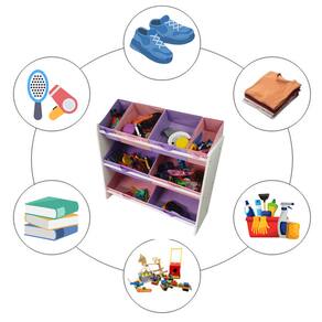 Utiliza um método Montessoriano que ajuda na educação e organização da criança. De uma forma lúdica, a criança começa a criar conceitos de organização, além de deixar o ambiente colorido, alegre e decorado, aumentando a sensação de lazer.Dimensões: Altura 83 cm | Comprimento 88 cm| Profundidade 30 cmMaterial: estrutura lateral produzida com MDP Branco 15mm.Hastes em madeira, pinos revestidos de (PVC), caixas de (TNT 80), estrutura de cadboard e poliéster.Quantidade de caixas:04 caixas grandes de 42 largura x 14 altura x 28 profundidade cm02 caixas médias de 28 largura x 14 altura x 28 profundidade cm02 caixas pequenas de 14 largura x 14 altura x 28 profundidade cmCores das caixas: rosa e lilás.Dimensões da caixa fechada:Altura 8 cm | Comprimento 36 cm | Profundidade 89cm | Peso 8,