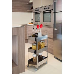 Uma linda maneira de decorar a sua cozinha, a sua sala, o seu banheiro ou o seu quarto e três cestas inteirinhas para colocar o que você quiser. O organizador de inox da linha Suprema tem um design moderno, que se adapta a qualquer ambiente ou estilo de decoração. Além disso, o produto é super funcional e lhe ajuda a otimizar espaço e organizar a casa. Suas três prateleiras suportam até 50kg e as rodinhas facilitam o seu manuseio. Feito em aço inox, o organizador é resistente, fácil de limpar e tem 40x28x77cm de dimensão.
