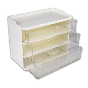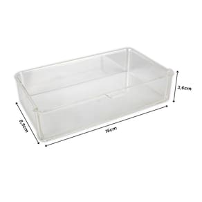 Contém: 01 - Suporte Organizador de Mesa; 03 - Gavetas Deslizantes de Acrílico Transparente. Essa caixinha com gavetas transparentes é prática e funcional, perfeita para quem busca manter a mesa ou bancada sempre organizada. Seu design compacto permite aproveitar melhor o espaço, e as gavetinhas oferecem uma fácil visualização e acesso rápido aos itens armazenados. Ideal para organizar artigos de papelaria, acessórios, maquiagens, itens de escritório e outros pequenos objetos, ela combina praticidade e um visual simples e moderno. As gavetas de plástico acrílico transparente facilitam a visualização do conteúdo sem precisar abri-las, tornando o dia a dia mais prático e organizado. Uma solução versátil para manter tudo no lugar, seja em casa, no escritório ou até mesmo no salão de beleza. Características Principais: - 3 gavetas deslizantes; - Design compacto que ocupa pouco espaço; - Ideal para ser Utilizado em cima de mesas, bancadas ou penteadeiras; - Acrílico transparente que facilita a visualização do conteúdo; - Gavetas práticas para armazenar e acessar os produtos rapidamente; - Indicada para armazenar artigos de papelaria, acessórios, itens de escritório, maquiagens, etc; - Ajuda a manter tudo em ordem, separando objetos por categoria; - Pode ser utilizada em casa, escritórios, consultórios ou salões de beleza; - Material leve e durável; - Fácil de limpar. Medidas: Suporte Organizador: 12,8 x 16,4 x 9cm A x L x P Gaveta: 3,6 x 16 x 8,9cm A x L x P Boas Compras ; Marca: Não Informado