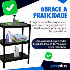 O Organizador Modular possui três prateleiras, com uma distância de 24cm entre cada uma, proporcionando um espaço amplo e bem dividido para todos os seus itens.