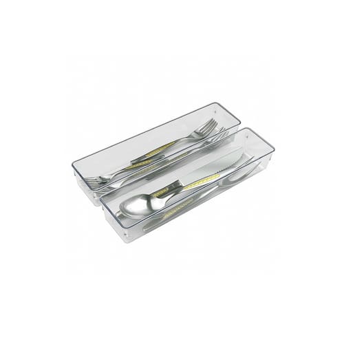 Contém 2 Potes Organizadores medindo 32cm x 8cm x 5,5cm cada um.