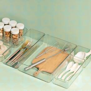 Esses organizadores são perfeitos para setorizar suas gavetas. Você compõe conforme os itens que serão organizados, além de serem empilháveis para otimizar o espaço utilizado e modulares para que você defina o tamanho e a quantidade que necessita para organizar melhor o seu ambiente. São ideais para temperos, materiais de escritório, gavetas e outros objetos pequenos. Em plástico de alta qualidade, transparente para facilitar a visualização dos objetos.