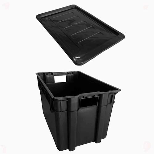 Caixa reforçada 60 litros preta, empilhavel, sem tampa, resistente.