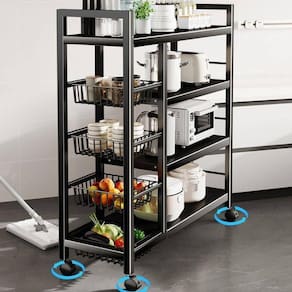 Gabinete Multiuso de Aço Carbono – Fruteira e Organizador de Cozinha com Cestos AramadosTransforme sua cozinha com o Gabinete Multi Story Multifuncional, um organizador prático, moderno e resistente.Fabricado em aço carbono com pintura antiferrugem, ele combina durabilidade e design sofisticado, garantindo organização e aproveitamento inteligente do espaço.As prateleiras superiores são ideais para apoiar micro-ondas, forno elétrico ou pequenos eletrodomésticos, suportando até 30kg com total segurança.Já os três cestos aramados oferecem ventilação adequada e praticidade para armazenar frutas, legumes e vegetais, mantendo-os sempre frescos.Além disso, o layout versátil permite organizar pratos, utensílios e mantimentos de forma acessível.? Especificações do Produto- Estrutura: Aço carbono com pintura antiferrugem- 03 Cestos aramados multiuso- 03 Prateleiras adicionais para utensílios e eletrodomésticos- Suporte para micro-ondas ou forno elétrico- Ponteiras antiderrapantes para maior estabilidade- Capacidade de carga: até 30kg?? Dimensões- Altura: 134 cm- Largura: 80 cm- Profundidade: 32 cm? Benefícios- Organização prática para cozinha, lavanderia ou área gourmet- Estrutura resistente e durável- Design moderno que valoriza o ambiente- Armazenamento ventilado para frutas e legumesImagens meramente ilustrativas. Marca: Não Informado
