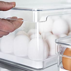 Seu design foi pensado para permitir armazenagem no interior da geladeira ao invés da porta, evitando troca de temperaturas constantes que podem deteriorar os ovos, mantendo uma rotina sem desperdícios. Produzido em material resistente o organizar possui alças confortáveis que facilitam na hora do transporte.