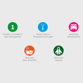O Organizador M Vizapi Classic Branco é ideal para quem deseja organizar e cuidar melhor de suas roupas de cama, banho e casacos, possui visor transparente para facilitar na visualização e identificação das peças, também tem fechamento em zíper e alças que facilitam o transporte. Ideal para mantas, lençóis, toalhas, casacos e etc. Tamanho do Organizador: 50x40x20cm