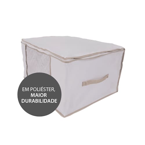 O Organizador G Vizapi Exclusive Branco Bege é ideal para quem deseja um produto de qualidade superior e maior durabilidade, com a finalidade de organizar e cuidar melhor das suas roupas de cama, mesa e banho, possui visor transparente para facilitar na visualização e identificação das peças, também tem fechamento com zíper e alças que facilitam o transporte. Ideal para cobertores, edredons finos, colchas finas, roupões, blusões, lençóis, toalhas e etc. Tamanho do Organizador: 60x45x30cm