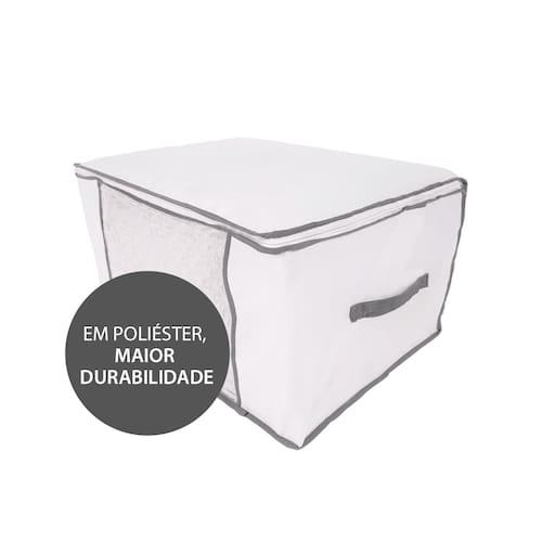 O Organizador G Vizapi Exclusive Branco Cinza é ideal para quem deseja um produto de qualidade superior e maior durabilidade, com a finalidade de organizar e cuidar melhor das suas roupas de cama, mesa e banho, possui visor transparente para facilitar na visualização e identificação das peças, também tem fechamento com zíper e alças que facilitam o transporte. Ideal para cobertores, edredons finos, colchas finas, roupões, blusões, lençóis, toalhas e etc. Tamanho do Organizador: 60x45x30cm