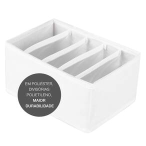 O Organizador 5 Divisórias Vizapi Exclusive Branco é ideal para quem deseja um produto com maior durabilidade para otimizar o espaço e a organização de armários e closets, com 5 nichos separadores, permite uma visualização e escolha mais rápida das suas peças. É a solução perfeita para organizar roupas infantis, lenços, meias, acessórios e etc. Tamanho do Organizador: 20x13x10cm