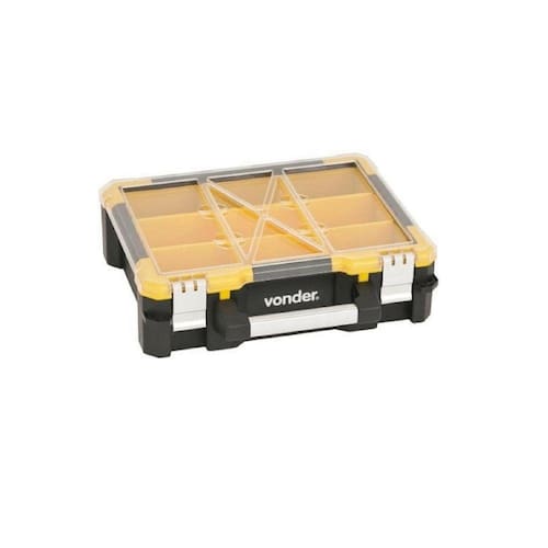 Organizador Plástico Colmeia / Maleta - Opv 500 Vonder Indicado para organizar e armazenar peças e acessórios em geral Possui alça para transporte e 9 compartimentos móveis Comprimento do organizador para ferramentas:380,0 mm Largura do organizador para ferramentas:340,0 mm Altura do organizador para ferramentas:110,0 mm Material do organizador para ferramentas:Polipropileno Cor do organizador para ferramentas:Preto/amarelo e transparentes Capacidade de carga:17 kg Dados do produto Garantia: 90(dias) Marca: Vonder Ncm: 39269090 Ean: 7893946190965 Dados de Embalagem Peso Total (Produto + Embalagem): 1200.00(gr) Altura: 38.00(cm) Largura: 11.00(cm) Profundidade: 34.00(cm)