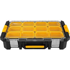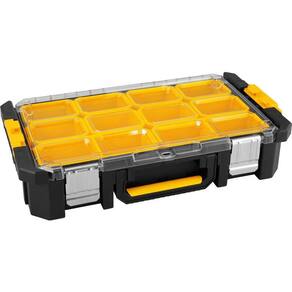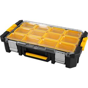 Conteúdo da Embalagem: 1 Organizador plástico. Possui 12 compartimentos removíveis, sendo 2 destes com divisória interna também removível, podendo transformar o organizador em uma maleta. Conta com alça para transporte emborrachada, duas travas reforçadas de metal e tampa com opção de colocar cadeado. Permite ser acoplado na Caixa Plástica para Ferramentas CPV 700 (61.05.000.700) e Caixa Plástica para Ferramentas, com Rodas CRV 700 (61.05.007.000) (não acompanham). Indicado para guardar e organizar peças e acessórios em geral. Modelo:OPV 700 Material:Polipropileno Comprimento:510 mm Largura:285 mm Altura:110 mm Capacidade de carga (kgf):15 kgf Cor do organizador para ferramentas:Preto, amarelo e transparente Massa aproximada (peso):2,4 kg