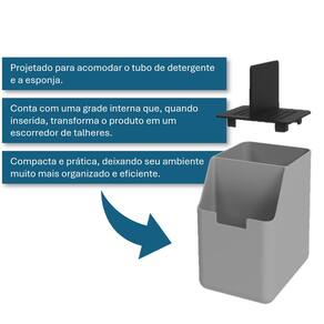 DIFERENCIAIS: Esse organizador é projetado para acomodar o tubo de detergente e a esponja, mantendo-os sempre à mão e em um local específico, evitando bagunça e desperdício de espaço na pia. Com espaço frontal estratégico, é possível armazenar colherinhas e outros talheres, facilitando o acesso e mantendo a área da pia livre de objetos espalhados. E para tornar esse organizador ainda mais versátil, ele conta com uma grade interna que, quando inserida, transforma o produto em um escorredor de talheres. Essa grade é ideal para acomodar talheres recém-lavados, permitindo que a água escorra facilmente, mantendo-os limpos e prontos para o uso.