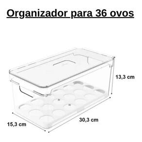 Dimensões do Porta Ovos: 30,3cm (C) x 15,3cm (L) x 13,2 cm (A) Capacidade: 36 Ovos Cor: Natural e Branco Peso: 490g