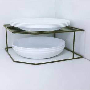 Sem precisar de fixação, o Suporte de Pratos Horizontal 2 Níveis Verde Oliva Bel serve para diferentes tipos de louças e materiais, facilitando a retirada, armazenamento e otimizando a rotina da casa.
