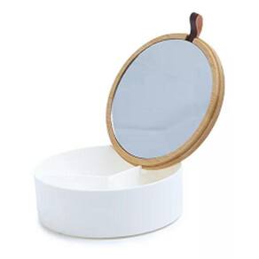 Organizador Redondo Multiuso 3 Divisórias Tampa Bambu Organização OK3388 Organizador redondo Multiuso 3 Divisórias com tampa de Bambu e espelho. O Organizador redondo com 3 divisórias é adequado para utilizar como porta joias. Multiuso: Para guardar Joias, Miçangas, acessórios de cabelo e maquiagens. Organizador Delicado serve como objeto decorativo para quartos, banheiros e penteadeiras. Durável e Higiênico: O Bambu é um material resistente e com propriedades que evitam a proliferação de bactérias. Material de Alta qualidade Resistente e fácil de limpar. Características: Alça de Couro . Material: Plástico. Contém Espelho. Material da Tampa: Bambu. Compartimentos: 3 Divisórias. Altura: 5cm. Largura: 14cm. Comprimento: 14cm. Imagens meramente Ilustrativas. Marca: Não Informado Ean: 7908192512598