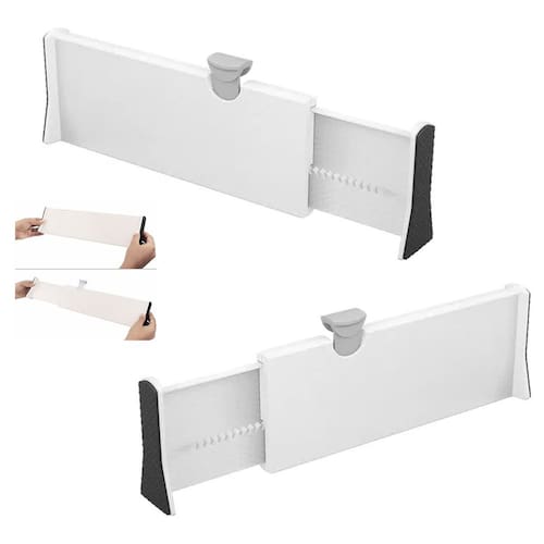 É muito fácil de usar, basta puxar a aba cinza para cima, em segundo lugar, estenda a divisoria para caber na sua gaveta. Por fim, empurre a aba cinza de volta para baixo para travar no lugar.