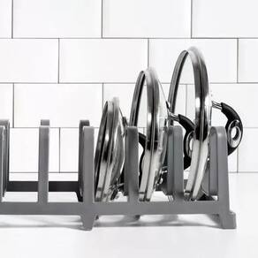 Sabe quando seu armário fica uma bagunça, pois as tampas se misturam Então, o organizador chegou para ajudar nas suas tarefas do dia a dia e não fazer você perder mais tempo tirando as tampas para achar aquela que realmente quer. Quando se trata de armários, otimizar os espaços é tarefa difícil e muitas vezes atrapalha na hora de cozinhar. Além de organizar as tampas de panelas, pode ser utilizado para organizar pratos, travessas, xícaras. Esse produto é feito de polipropileno que é um material com alta resistência à impactos, não transfere odor nem gosto aos alimentos, é leve, resistente à água fervente e o melhor o custo x benefício.