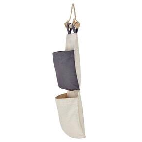 br /Não abra mão da beleza e do estilo na hora de arrumar sua casa. Para isso, conte com o organizador Tramontina em lona com 2 bolsos e corda para pendurar. Produzido em lona 100% algodão, o cesto possui dois bolsos com capacidade para dois quilos cada e é ideal para armazenar livros, revistas ou brinquedos, tudo isso, pendurado na porta ou na parede do seu cômodo, ocupando menos espaço. É um item versátil e pode ser utilizado desde a sala de estar até a área de serviço da sua casabr /br /br /br /1. Corda de sisal para pendurar.br /2. Lona 100% algodão na cor natural e cinza.br /3. Pode ser guardado dobrado.br /4. Não impermeável.br /5. Capacidade 2 kg por bolsa.br /br /br /1. Não lavar a seco. br /2. Lavar a mão. br /3. Pode ocorrer o desbotamento da cor na primeira lavagem. br /4. Ao lavar, por ser em algodão, o produto está sujeito a encolhimento de 10%. br /5. Não usar alvejante a base de cloro. br /6. Não secar em tambor. br /7. Passar em temperatura baixa máx. 110C br /8. Uso interno. br /9. Retirar a corda e o suporte de madeira para lavagem.br /br /EAN13: 7897746213305br /DUN14: 27897746213309br /NCM: 6307.90.90br /Peso Líquido: 0,1220 kg.br /Peso Bruto: 0,1720 kg.br /Metragem: 0,002244 m.br /Dimensões Produto Compr. X Larg. X Alt. : 240x 80x 550 mm.br /Capacidade: 4,00 kg.br /Cor 1: FFF8DC Hexabr /Cor 2: 4F4F4F Hexabr / Ean: 7897746213305