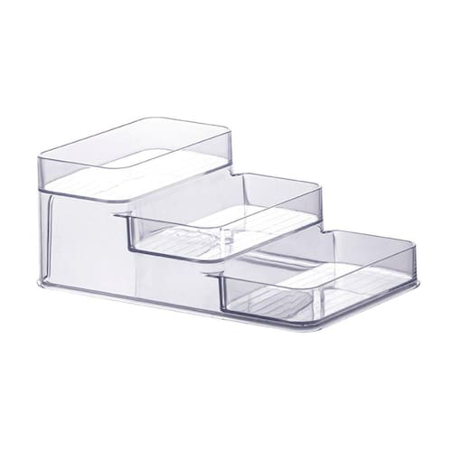 O organizador transparente multiuso triplo possui um designer moderno e elegante, por sua transparência é fácil de identificar o conteúdo interno. É ideal para talheres, roupas, alimentos, maquiagens, itens de escritório, produtos de higiene e muito mais.