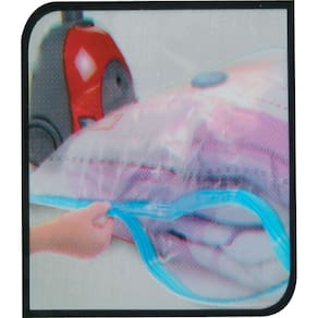 Garanta mais espaço na bagagem e proteja suas roupas contra os insetos, traças, sujeiras e odores. Este organizador oferece mais praticidade para armazenar roupas e artigos de cama ou banho. Basta guardar os itens no organizador, lacrar a abertura e conectar o seu aspirador de pó no local indicado. A sucção do aparelho fará com que o ar seja eliminado e o volume diminua consideravelmente.